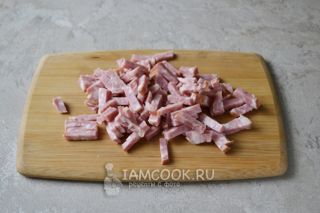 Колбасу нарежьте такой же соломкой, как и хлеб.