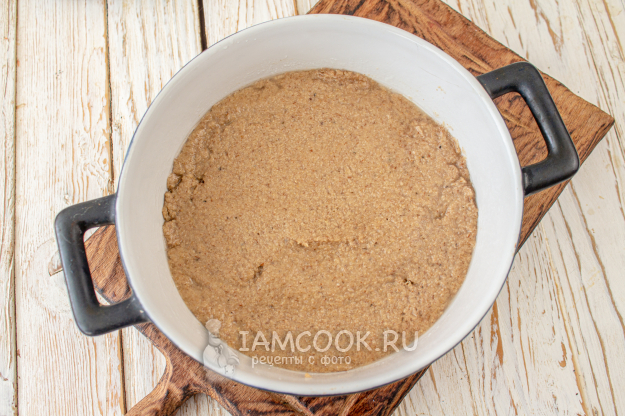 Для теста в подходящей посуде смешайте овсяную муку, растопленное кокосовое масло и псиллиум. Оставьте массу до набухания псиллиума, около 5-7 минут.