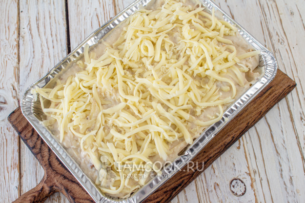 Присыпьте 1/4 частью натертого сыра.