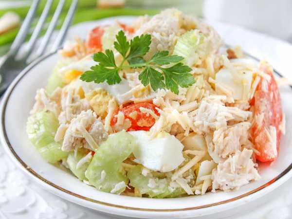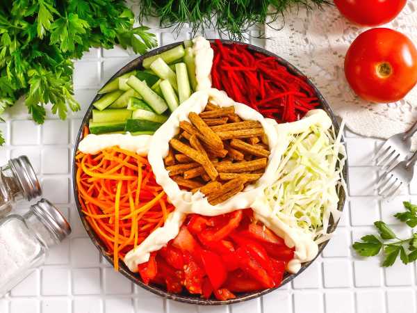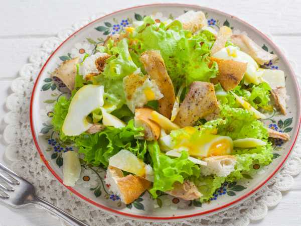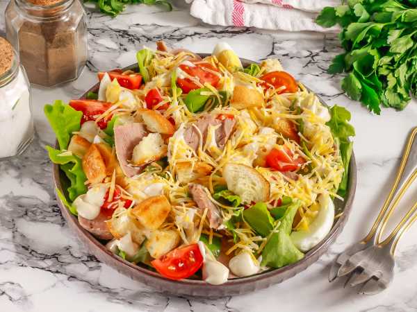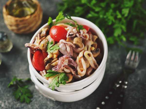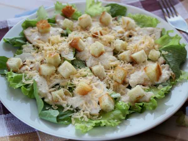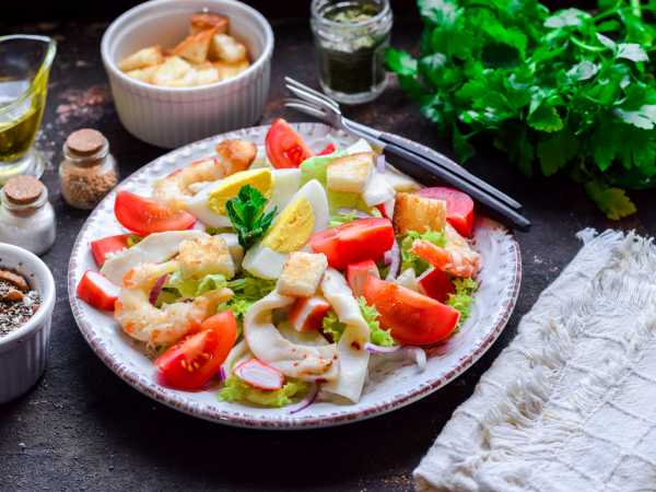 Постный «Цезарь» с кальмарами готов, подавайте сразу! Приятного аппетита!!!