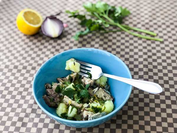 Приготовьте заправку: смешайте оливковое масло, сок лимона, соль, черный молотый перец и прованские травы.