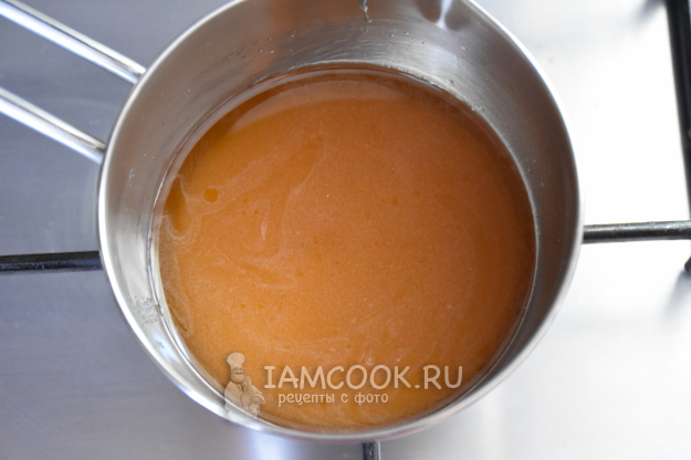 В сотейнике с толстым дном соединить два вида сахара, мед, влить воду и хорошо перемешать. Поставить на огонь и нагревать до растворения сахара, время от времени помешивая. Не кипятить!!!