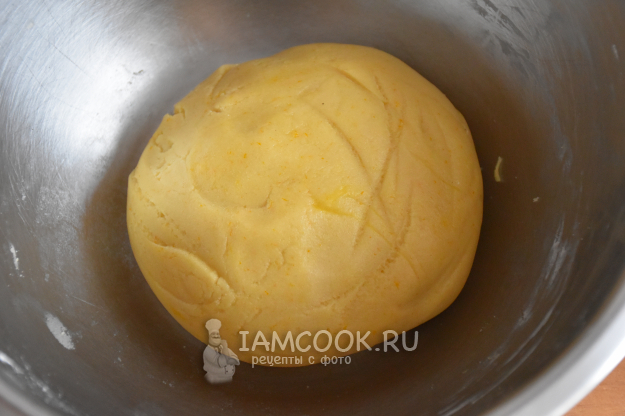 Муку соединить с цедрой и в несколько приемов, каждый раз перемешивая, ввести в тесто.