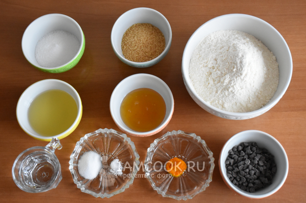 Для приготовления постного печенья с шоколадом и апельсиновой цедрой нам понадобятся следующие ингредиенты.