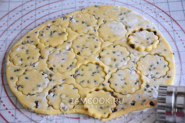 Раскатать тесто толщиной 6 мм и вырезать печенье с помощью формочек.