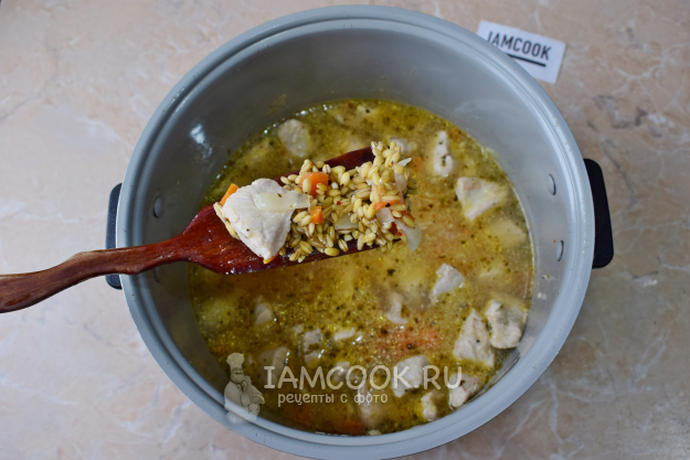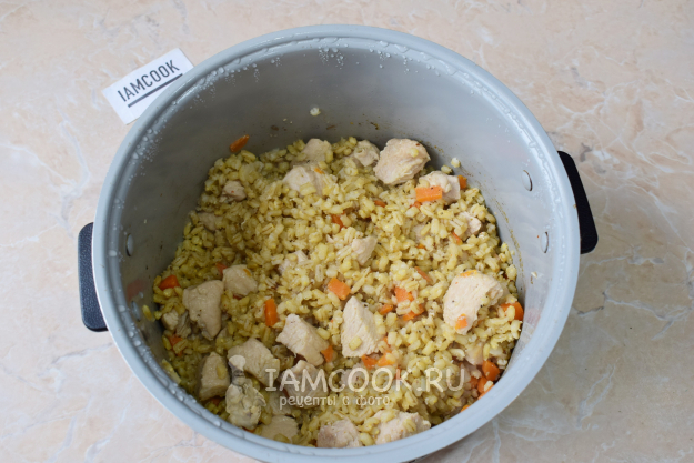 В процессе приготовления следите за степенью готовности перловки. Она увеличится в размере и впитает в себя всю воду. Отключите мультиварку и оставьте перловку с индейкой в мультиварке под крышкой постоять еще минут на 15, чтобы блюдо дошло.
