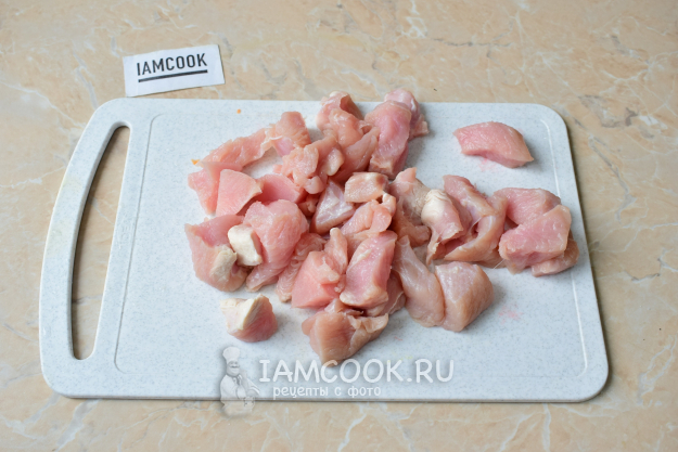 Мясо индейки нарежьте небольшими кусочками.