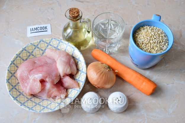 Для приготовления перловки с индейкой в мультиварке возьмите необходимые ингредиенты по списку. Мясо индейки берите без костей.