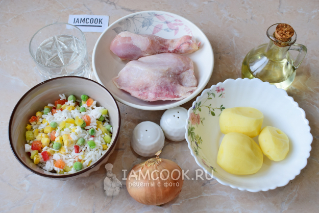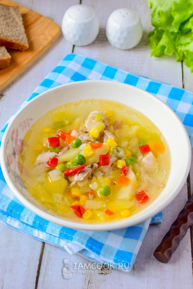 Для супа из гавайской смеси с курицей подготовьте необходимые ингредиенты по списку.