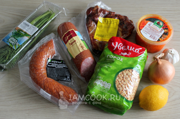Для горохового супа с лимоном подготовьте ингредиенты по списку к рецепту.