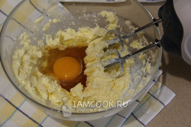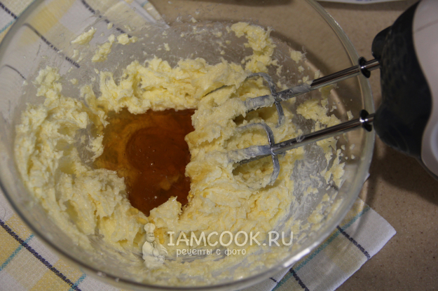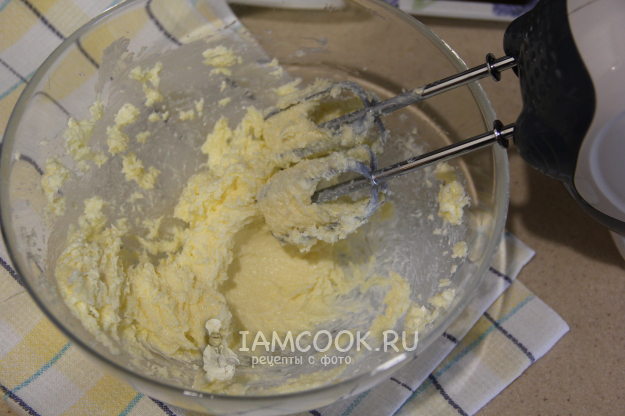 Взбить мягкое масло с сахаром в течение 3 минут.
