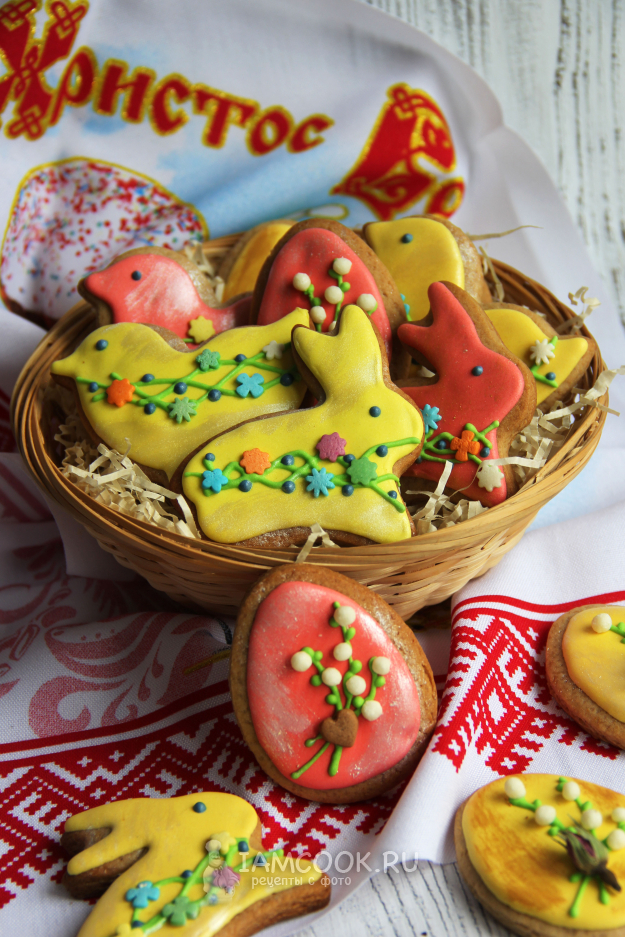 Посмотрите, какие красивые, яркие имбирные пряники с глазурью на Пасху получились.