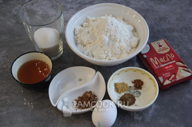 Подготовить продукты для пасхальных имбирных пряников с глазурью. Масло предварительно размягчить при комнатной температуре.