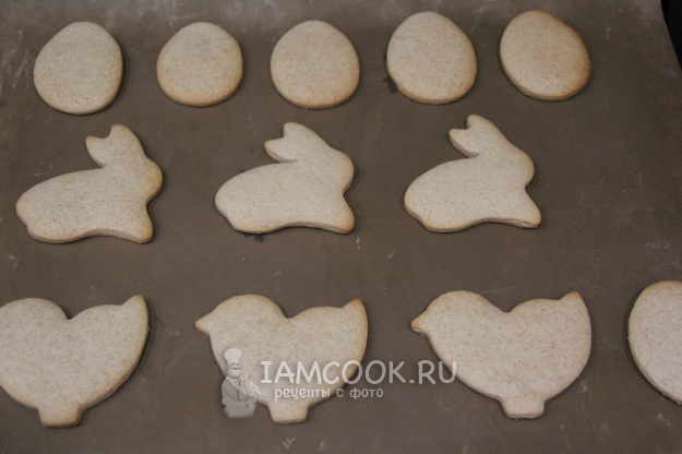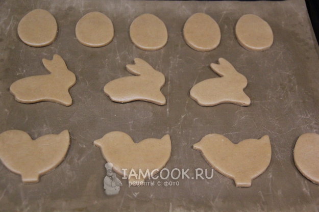 Противень застелить пергаментом или тефлоновым ковриком. Выложить заготовки пряников на противень.