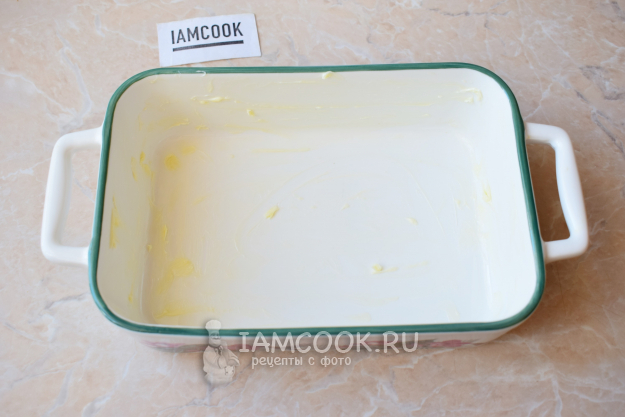 Для запекания подойдет любая жаропрочная форма. Дно и бока формы смажьте сливочным маслом.