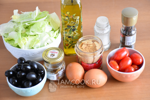 Для приготовления салата «Ницца» с консервированным тунцом нам понадобятся следующие ингредиенты.