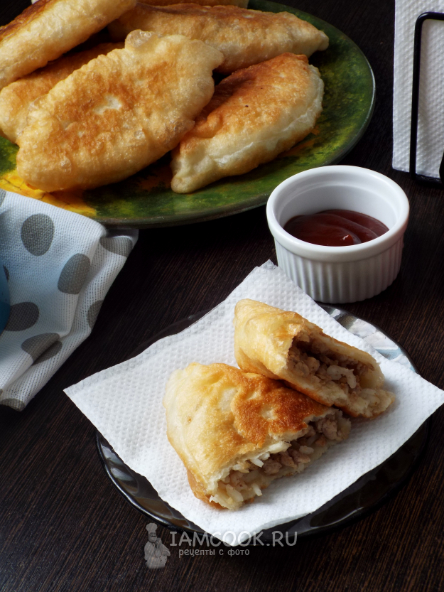 Жареные пирожки с рисом и фаршем готовы.