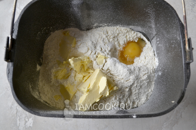 Добавьте в ведерко соль, мягкий маргарин, яйцо.