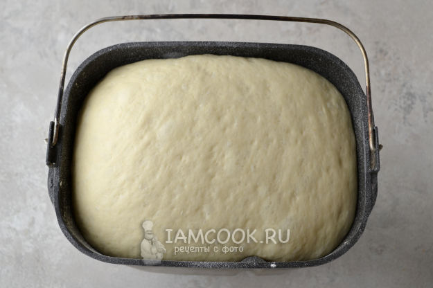 Поставьте ведерко в хлебопечь. Установите режим замеса теста. В моей хлебопечке это "Основное тесто" продолжительностью 2 часа 20 минут.