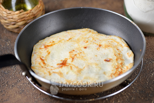 Сковороду я советую использовать небольшого диаметра, такие блины легче выпекать и переворачивать. Смажьте разогретую сковороду растительным маслом, вылейте на нее тесто и сразу же разровняйте его ложкой по сковороде, придавая блинам круглую форму. Выпекайте блины с обеих сторон до слегка румяной корочки.