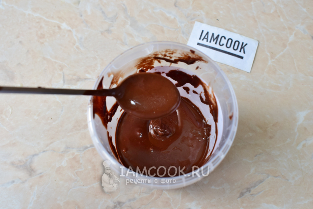 Шоколад поломайте на кусочки и растопите в микроволновой печи. Но не ставьте его сразу на длительное время. Каждые 10-20 секунд шоколад необходимо перемешивать. Постепенно он начнет плавиться. Если сразу поставить шоколад в микроволновку на длительное время, то он просто сгорит. Растопленный шоколад охладите до комнатной температуры.