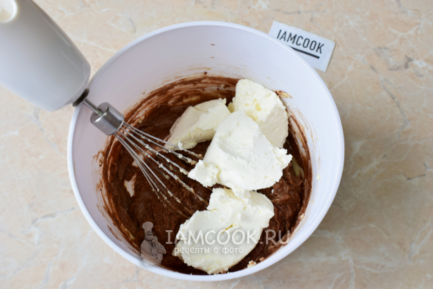 Вмешайте сыр в крем. Долго взбивать крем с сыром не надо - он может расслоиться. Достаточно просто все смешать.