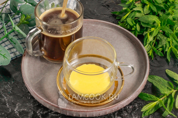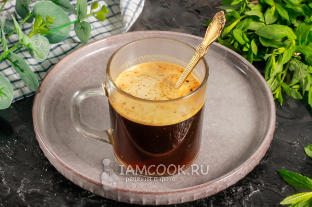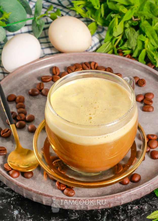 Залейте горячим кофе и сразу же перемешайте, чтобы взбитая масса равномерно распределилась по напитку и собралась сверху пышной пенкой. Если не перемешаете, то желток может свернуться и осесть хлопьями. Подайте кофе с яйцом горячим.