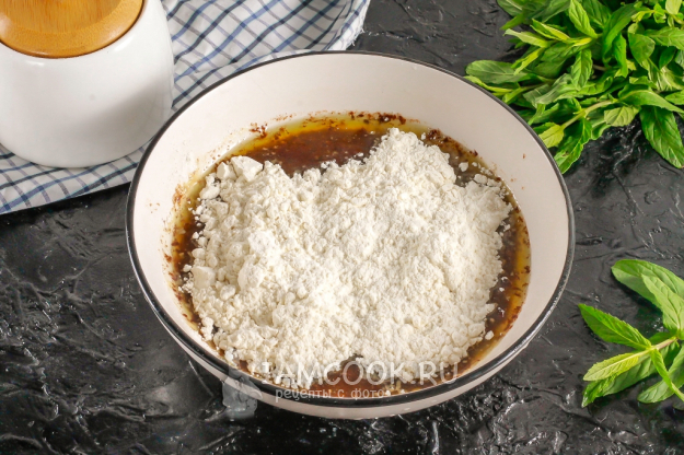 Растопите сливочное масло в микроволновке или на водяной бане. Всыпьте в него сахар и соль, пшеничную муку высшего сорта. Желательно просеять муку заранее, если у вас есть время.