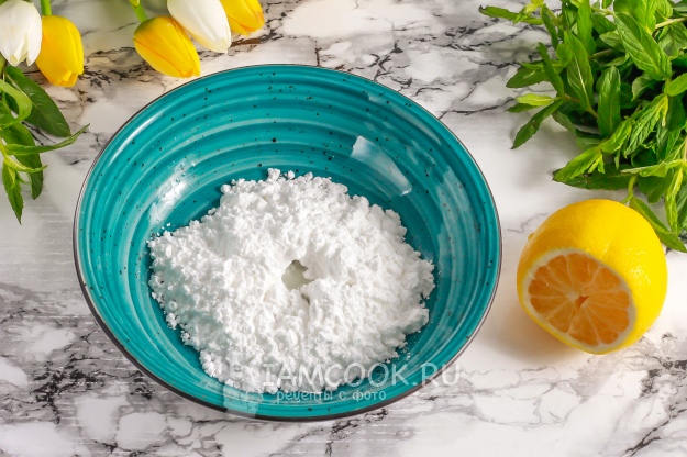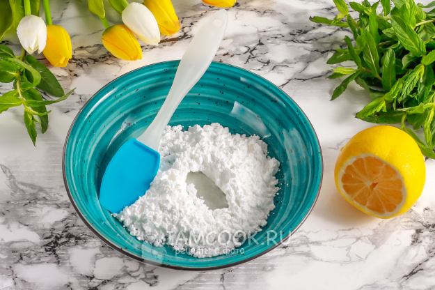 Возьмите необходимые ингредиенты для приготовления простой глазури для кулича из сахарной пудры.