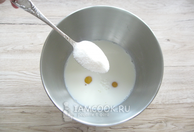 Затем добавьте яйца, сахар, соль и ванильный сахар.