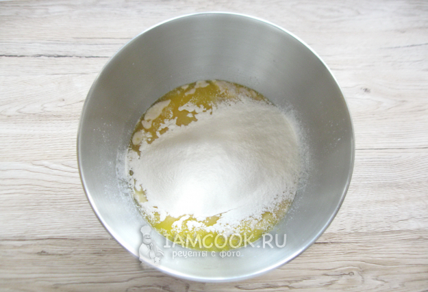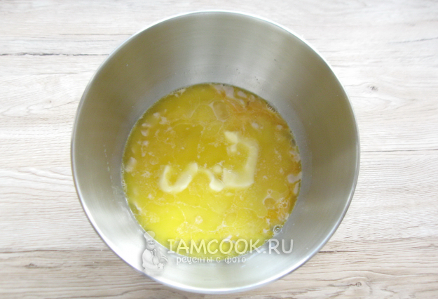 Растопите сливочное масло, немного охладите и добавьте в тесто.
