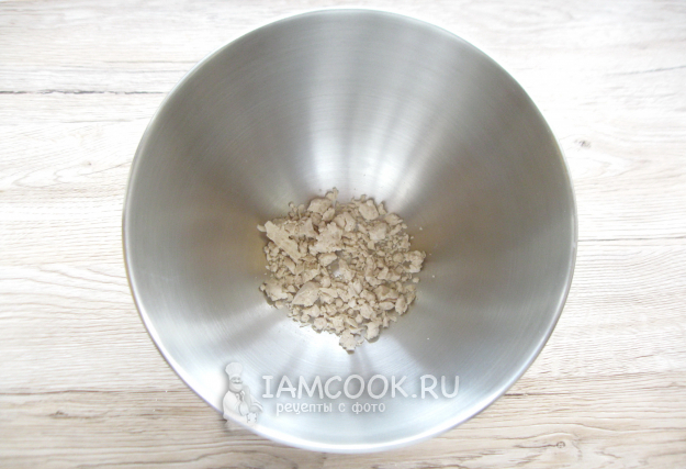 В миску выложите дрожжи. У меня свежие, сухих потребуется в 3 раза меньше.