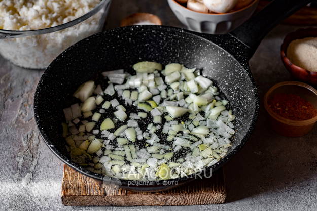 Обжарим в растительном масле на небольшом огне до прозрачности.