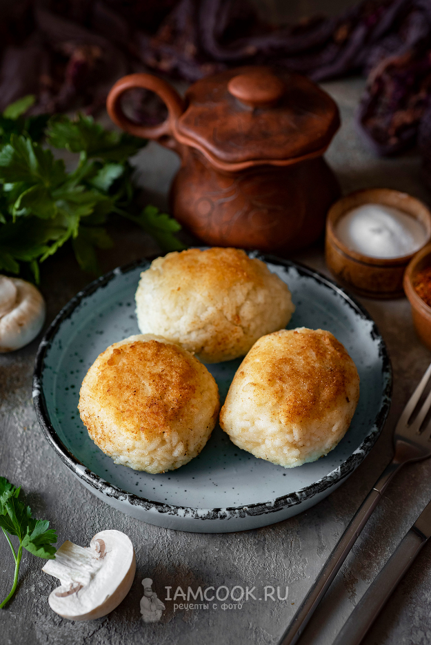 Горячие постные рисовые зразы с грибами выложим на тарелку и подадим к столу с любимым соусом. Приятного аппетита!