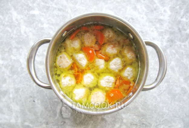Через 10-15 минут выложите в кастрюлю жареные фрикадельки.