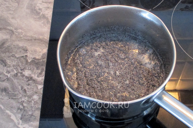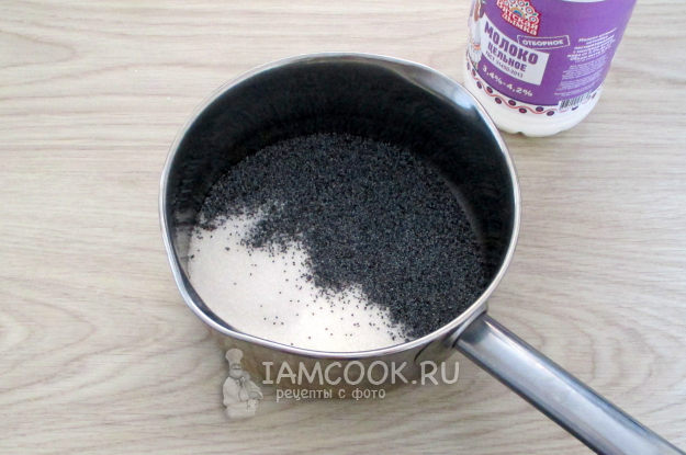 Для приготовления начинки соедините молоко, сахар и промытый в сите мак. Перемешайте.
