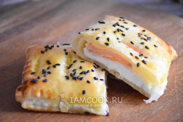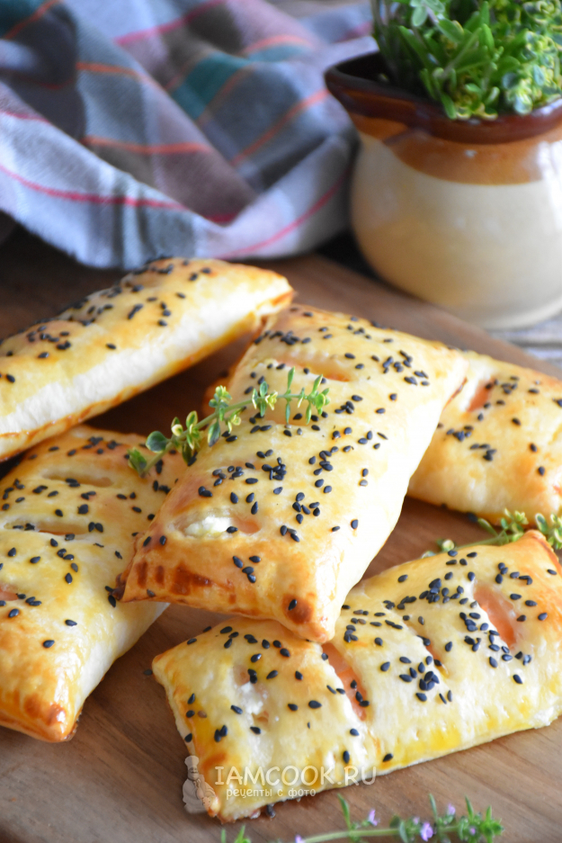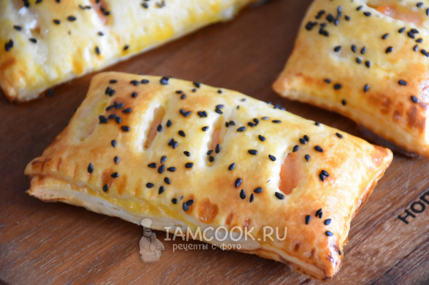 Слойки с семгой из слоеного теста готовы. Приятного аппетита!