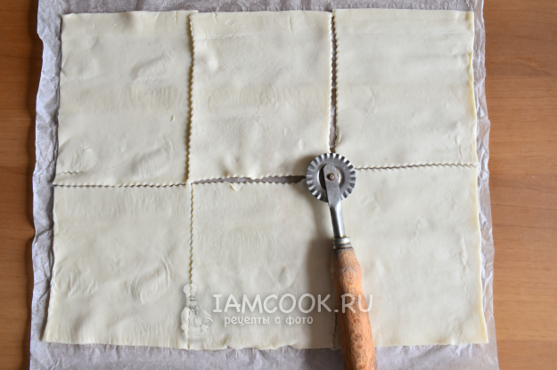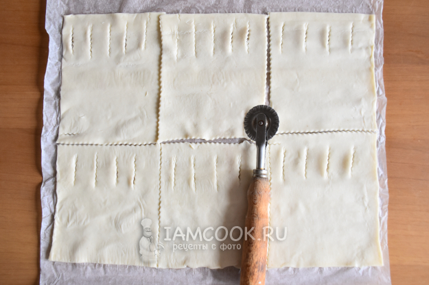 Разрезать тесто на 6 одинаковых прямоугольников.
