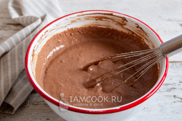 Добавьте сахар или сахарозаменитель, какао в порошке, разрыхлитель. Тщательно всё перемешайте до однородной массы без комочков.