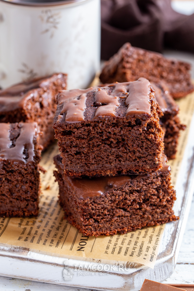 Охлаждённый шоколадный брауни ПП подавайте к чаю или кофе.