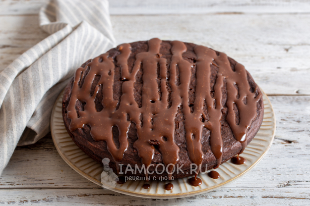 В микроволновке нагрейте молоко и растворите в нём шоколад. Полейте пропиткой пирог и уберите в холодильник для застывания.