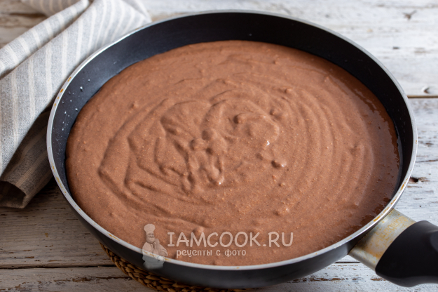 Сковороду разогрейте с маслом, смажьте маслом и борта сковороды. Влейте тесто в сковороду, накройте крышкой и на медленном огне готовьте ПП брауни 20-30 минут. Готовность проверьте деревянной шпажкой - она должна быть сухой при выходе из середины пирога.