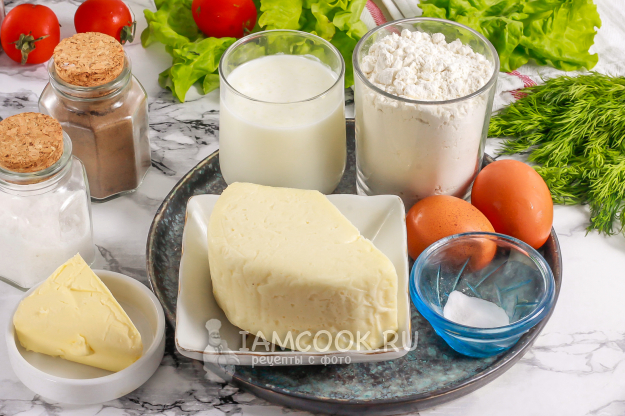 Подготовьте необходимые ингредиенты для создания румяных и аппетитных чеченских лепешек с сыром (на кефире).