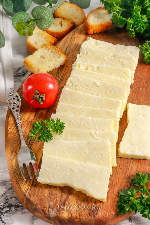 Прогрейте нож в горячей воде или смажьте растительным маслом и нарежьте сыр ломтиками. Если вы не дадите сыру созреть около 1-2 суток, то при нарезании он будет крошиться и распадаться на части. Подайте вкусный домашний сыр из кислого молока к столу с хлебом, лавашом, поджаренными тостами, свежей зеленью или овощами.