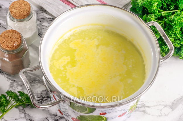 Не доводите до кипения, чтобы творожная масса не расслоилась на крупинки. Прогрейте на минимальном нагреве до температуры 80-85 градусов. Следите за тем, чтобы жидкость в емкости не булькала! Проварите примерно 10 минут - этого времени вполне хватит для того, чтобы белок собрался сверху, а затем осел на дно. Выключите нагрев и оставьте всю массу в кастрюле на 10 минут.