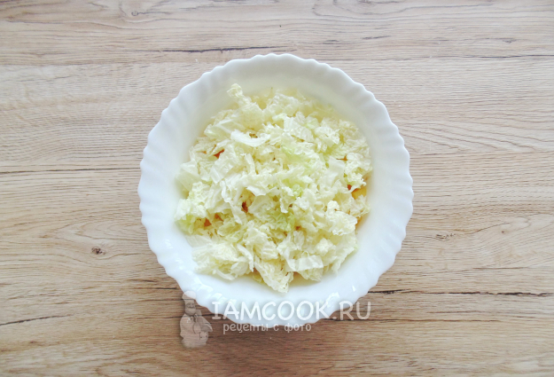 Подготовьте ингредиенты для салата «Нежность» с пекинской капустой и курицей.