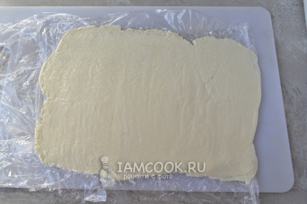 Скалкой раскатайте сырки в прямоугольный пласт толщиной 4-5 мм.