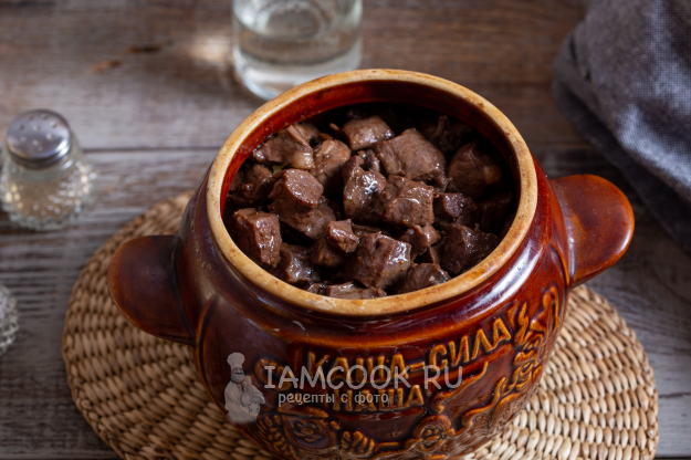 На стол готовое свиное сердце с картошкой подавайте прямо в горшочках, в горячем виде.