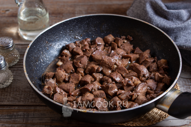 Свиное сердце помойте под проточной холодной водой. Обсушите салфетками и нарежьте небольшими кубиками. В масле обжарьте нарезанное сердце до выпаривания жидкости 5-10 минут. Немного присолите.