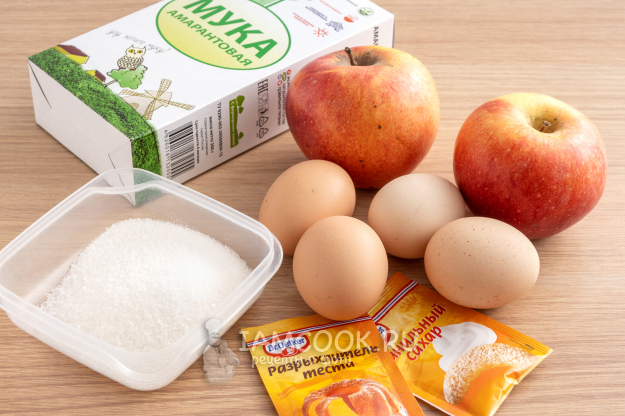Соберите продукты для приготовления безглютеновой шарлотки из амарантовой муки.